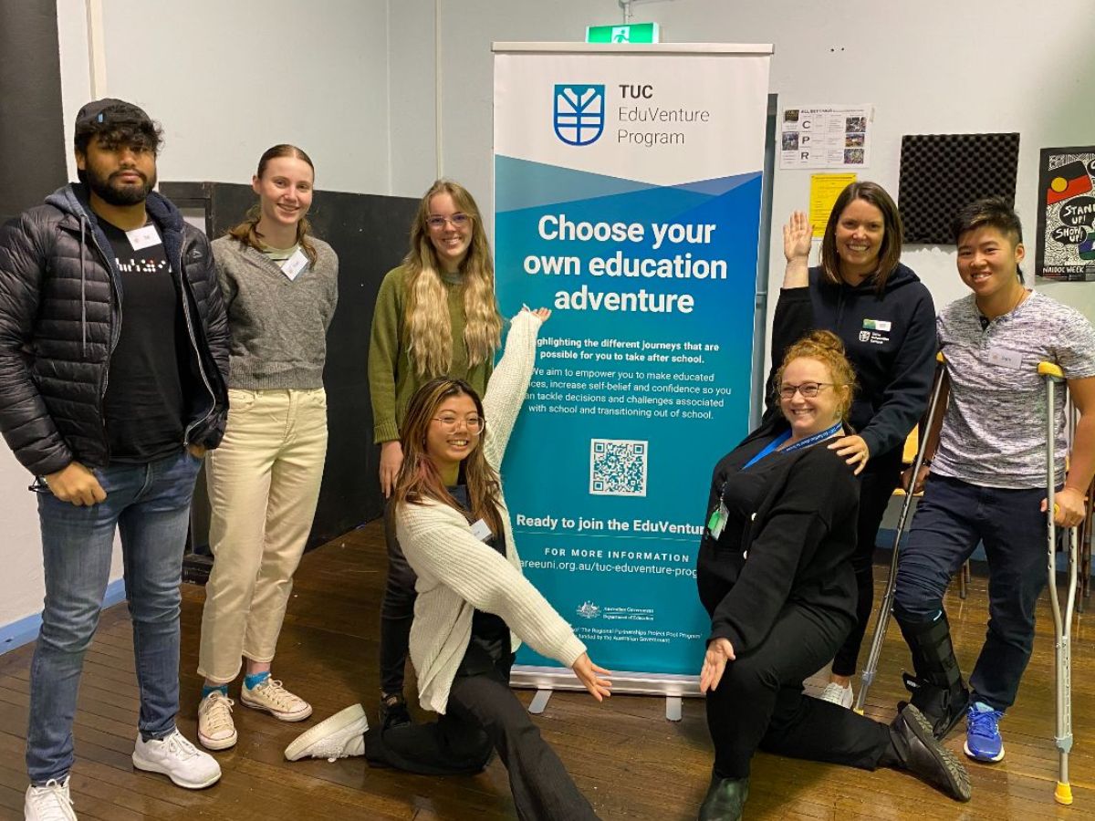 At the end of Term 2 TUC were very excited to visit 6 local High Schools to start our EduVenture Project. Funded by the Federal Government’s RPPPP initiative our subproject- EduVenture is one of 20 across the East Coast of Australia. Along with four student ambassadors from ANU in Canberra, and several TUC ambassadors, the group visited all Year 8 students at Great Lakes College (Tuncurry), Taree, Chatham, Wingham and Gloucester High Schools and Bulahdelah Central School, roughly 550 students. It was fantastic to chat to the students and hear about their aspirations for life after school and to find out what sort of things they would like to know more about regarding their careers as they move through High School.